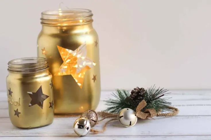Beautiful gold star lanterns made with upcycled glass jars. Step by step tutorial to making stunning festive DIY gold lanterns..Christmas table decor