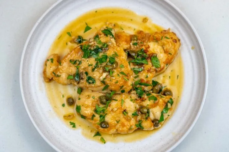 A simple Italian one-pan recipe for chicken piccata without wine that is a great weeknight dinner option or for entertaining.