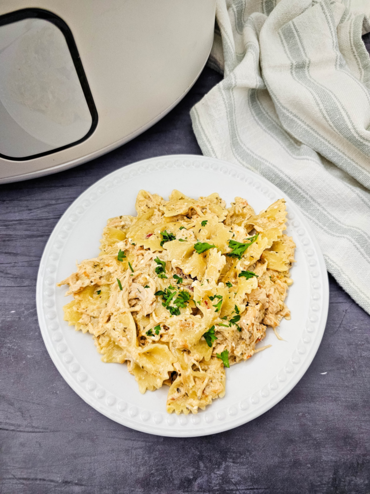 Creamy, comforting, and easy to prepare, this Garlic Parmesan Chicken Pasta is a slow cooker favorite. The chicken cooks until tender in a rich, cheesy sauce that pairs perfectly with pasta.